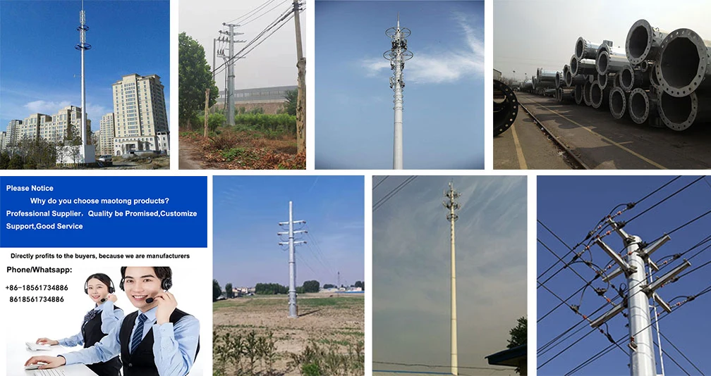 As the professional manufacturers, Mao Tong would like to provide you 10KV Single Pipe Transmission Monopole Electric Tower. And we will offer you the best after-sale service and timely delivery. Single tower, refers to a single steel pipe composed of freestanded towering structure for wireless communication, its main body is circular or polygonal section welded steel pipe, referred to as a single tower. Single tube tower body material Q345B, other auxiliary materials Q235B, the tower body is pure steel structure, no beautification and camouflage modeling. The common tower shape is plug-in type, external climbing bracket type, internal/external flange type and so on